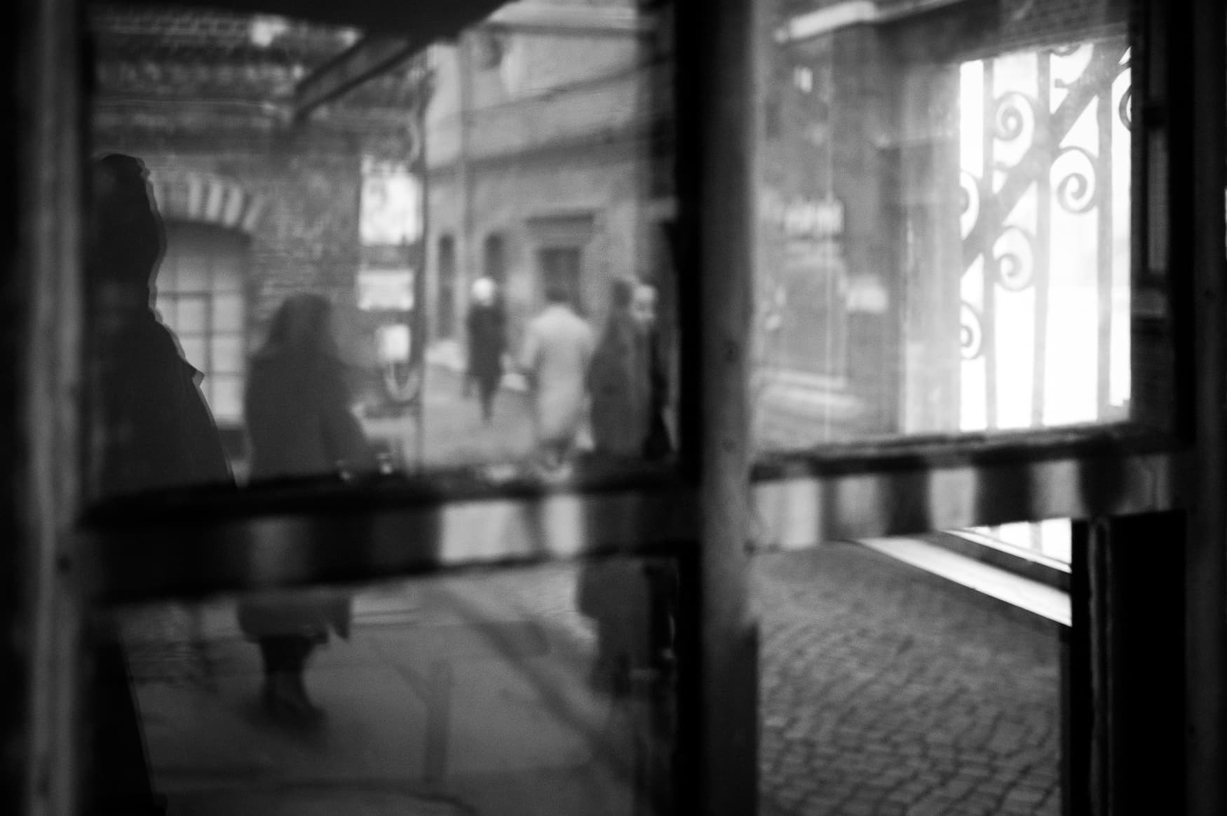 Details: Lichterketten als Bokeh, Spiegelungen in Schaufenstern, Scheiben, Pfützen